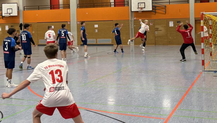 Dementsprechend hochkonzentriert gingen sie ins Spiel, welches bis zur 8. Minute sehr ausgeglichen verlief. Insgesamt war die Partie von vielen harten Aktionen geprägt, die der Schiedsrichter aus Sicht der Memminger teilweise nur halbherzig oder gar nicht ahndete. Im Laufe der ersten Halbzeit mussten dabei zunächst Mika und dann Ole Bratz nach einer harten Aktion behandelt werden und einige Zeit pausieren. Was jedoch in dieser Phase erfreulich zu sehen war, während dieser klaren Schwächung der Mannschaft kämpften die verbliebenen Spieler des TV Memmingen (TVM) umso mehr und bauten im Anschluss den Vorsprung bis zur Pause auf fünf Tore zum 16:11 Halbzeitstand aus.
